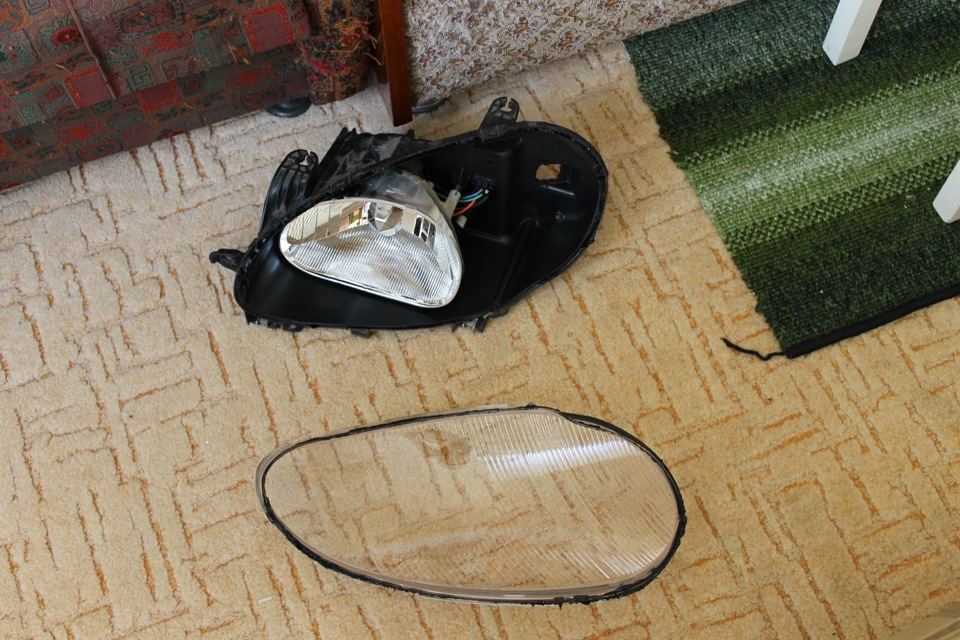 Разбирал фары после нагрева феном жены. Для этого положил фару в коробку, в дырку фен