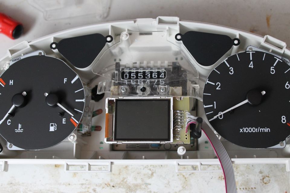Кто читал мой блог, тот знает, что я собираю бортовой компьютер на базе микроконтроллера Atmega32 и дисплея от мобильного телефона Siemens S65. Компьютер собран, обпробован на столе. Осталось главное — всунуть его в машину. Решено было встраивать экран прямо в приборную панель, как в нормальных машинах