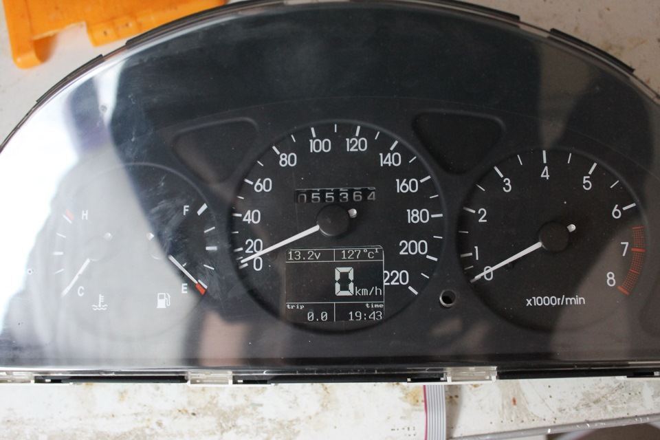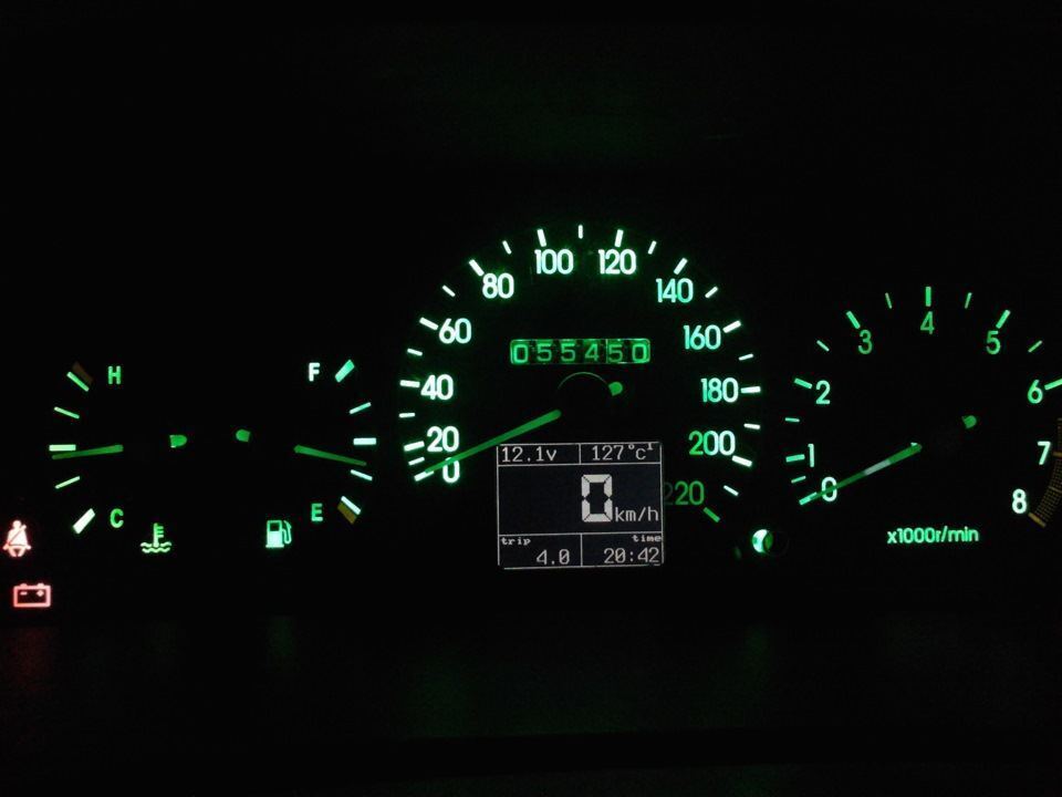 Так же решил пересветить приборку. Взял зеленую ленту, всунул в приборку. Так как опыта нет — получилось криво. Позже буду переделывать