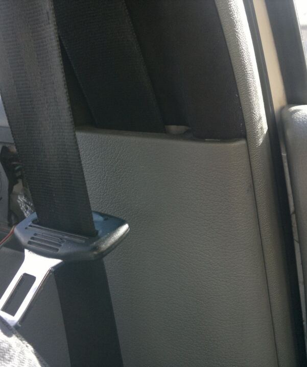 Процесс снятия накладки опишу коротко: снимаем декоративный пластик с петли ремня безопасности, откручиваем болт крепления петли (ключ на 13 или 14, если не ошибаюсь), откручиваем болт крепления верхней накладки стойки (крестообразная отвертка), отсоединяем нижний пластик стойки (крепится на 2х защелках, расположенных горизонтально, ближе к верхнему краю пластика; защелки такие же как у передних стоек). Инструкция для VAGоводов, но клипсы фактически универсальны, на любой авто подойдут.
