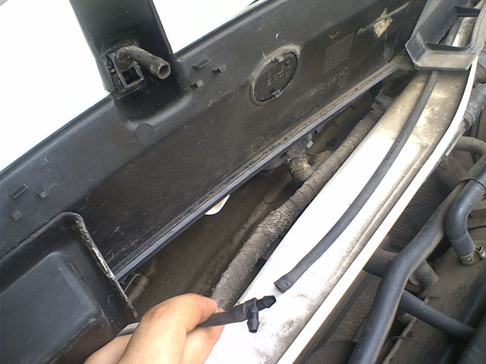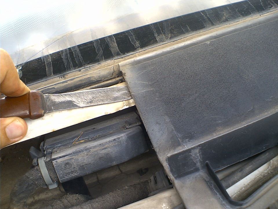 3. Снимаем уплотнитель и защитные пластиковые крышки, вначале правую (со стороны пассажира), не забывая отсоединить шланги омывателя, и затем левую.