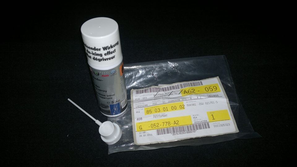Так же, в связи с грядущим зимним периодом приобретена оригинальная спрей-смазка для личинок дверных замков ( G 052 778 A2 ), обладающая, к слову, "размораживающим" эффектом (согласно надписям).