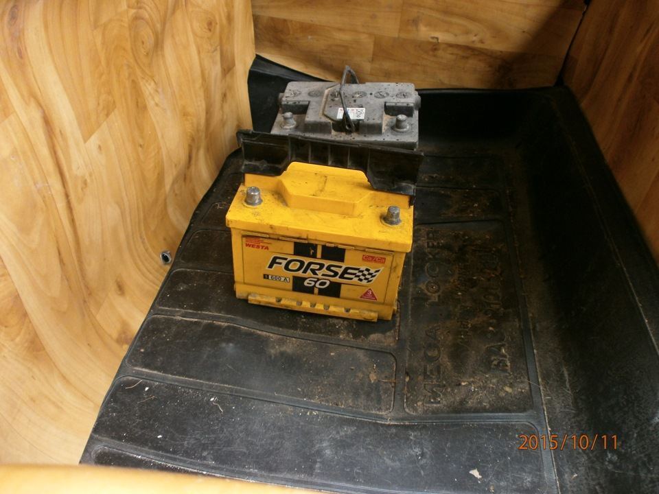 Возникли некие проблемы с крепежом, новый АКБ выше, старый крепеж не подходит, заводской не нашел на рынке(видать дефецыт) купил в строительном ларьке шпильку с резьбой, изготовил новый крепеж.Вот так и живем, спасибо за внимание