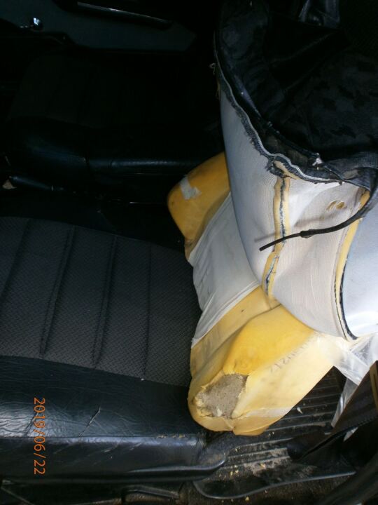 О какая" красота" вырваные куски, поролон прорезаный насквозь пружинами, та самая трень что херачила мне по спине