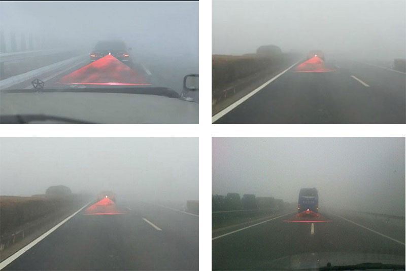 Лазерная ПТФ построена на принципе отражаться в мельчайших каплях тумана, проецируя красный треугольник