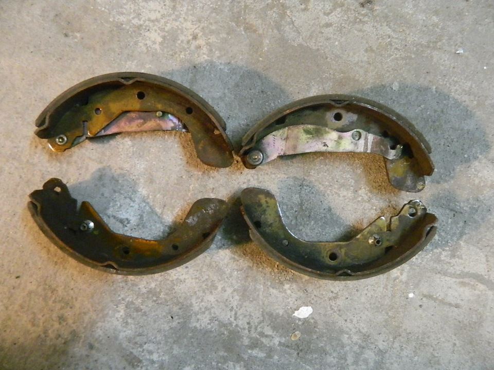 Поехал в "свой" сервис. Приступили. Состояние задних не порадовало, оба цилиндра заклинило на половину, то есть тормозили по одной колодке на каждую сторону. Поменяли. Колодки были еще в норме, но раз купил, надо менять. (Кстати, могу продать свои родные недорого, состояние на последних фото). Ремкомлекты — гуано, не подошло почти ничего, поставили старое, еще живое. Передние диски выработаны, колодок почти не было, замена труда не составила. Заменили тормозуху, прокачали, подтянули ручник.