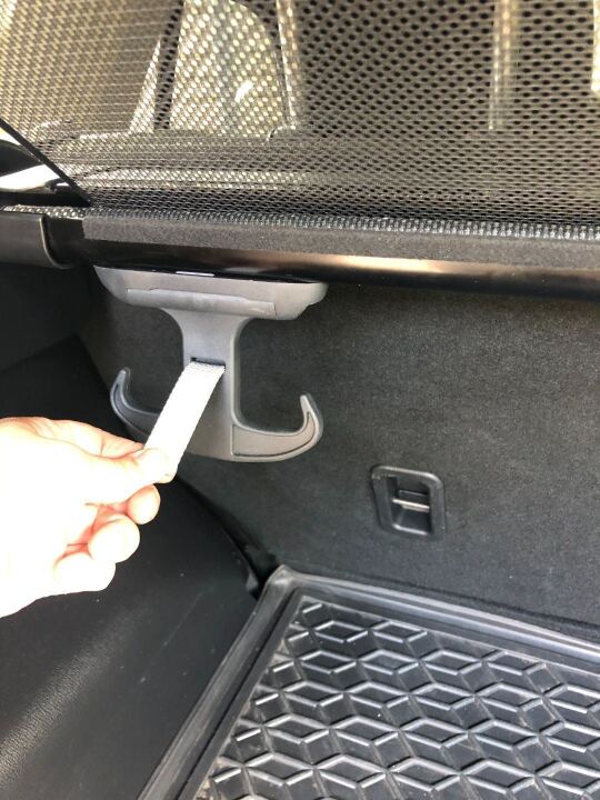 Є таке завдання, організувати розміщення сумки із покупками у просторі багажнику. Так як у СХ-5 чомусь немає жодного гачку або щось подібного щоб можна було повісити якись пакет/сумку, треба було щось вигадати. На допомогу прийшли зв'язки у минулому із VAG. Тож дивіться, що вийшло. Як на мене, досить не пагано.