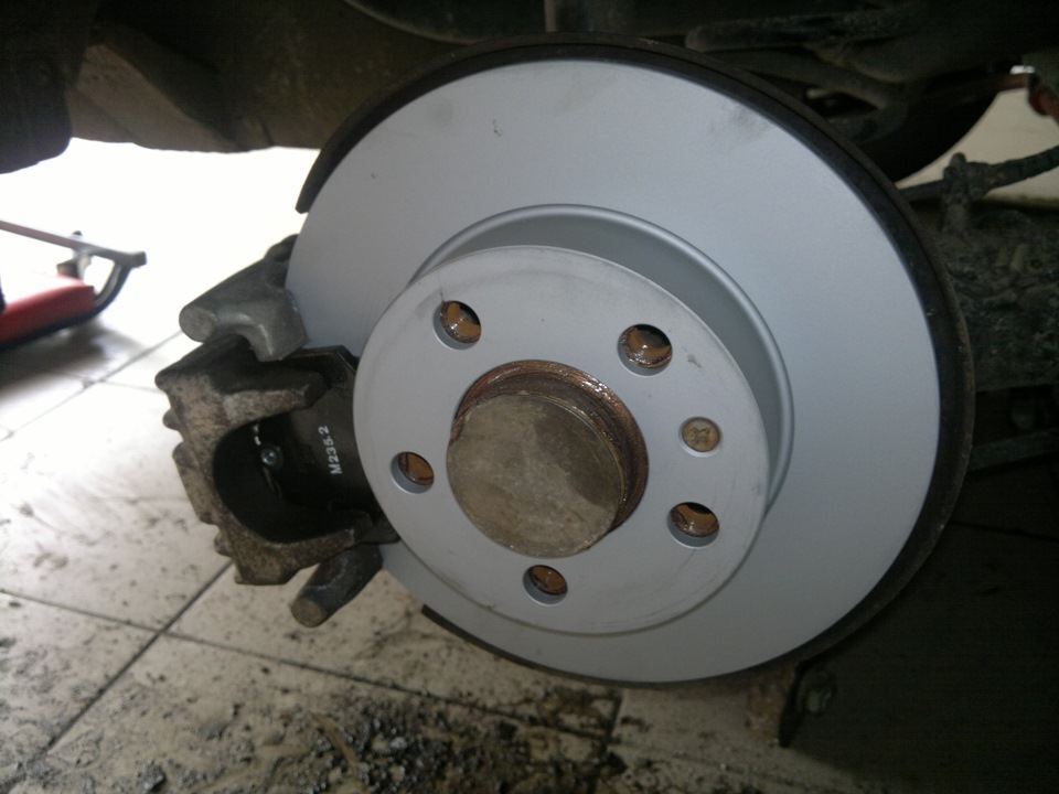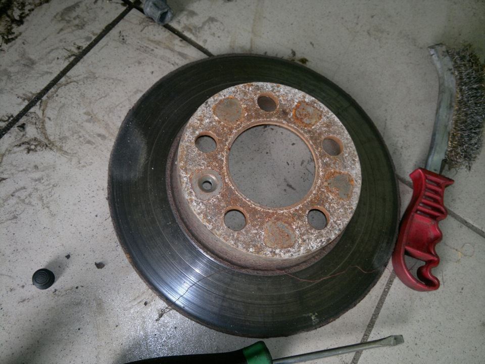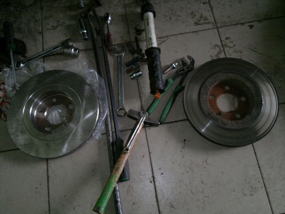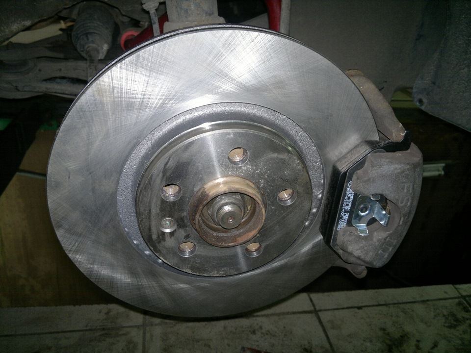 Во время замены обнаружилась проблема в левой цапфе ("слизана" резьба направляющей скобы тормозного суппорта) — тут же сняли и отвезли токарю, который проведя не хитрые манипуляции восстановил дорогостоящую деталь за символическую сумму в 80 гривен.