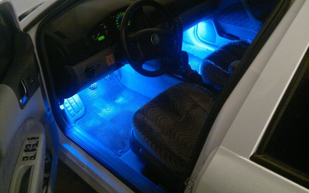 Вот собственно фото начального этапа подсветки. Пока что подключено напрямую (запитано к гнезду освещения пепельницы)