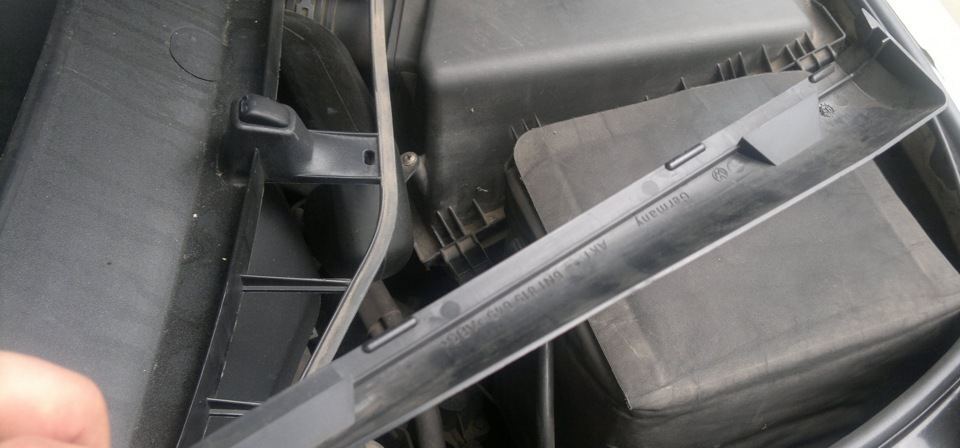Не знаю почему, но такой детали ранее у себя в машине не встречал (то ли не доукомплектовали, то ли на сервисе "добрые" мастера раньше сняли при замене фильтра).