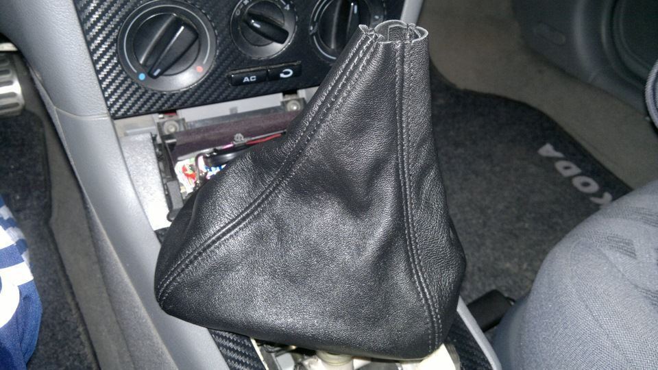 Проблема вторая: дермантиновая манжета рукоятки не была расчитана "анатомически" на тоннель рычага КПП моей октавии, в итоге в положении 2 и 4 передач срывался с крепежной рамки (не хватает длины манжеты спереди).