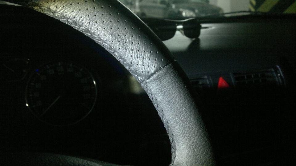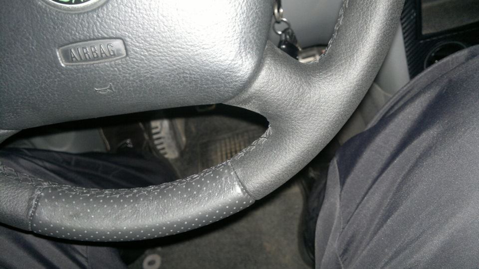 На самом деле, руль был бы перетянут еще до нового года, все упиралось в нежелание "плодить" ошибку эирбэга, т.к. надо было поездить без оного — подменный руль оказался от более молодой окташи и по радиусу, как собственно и по размерам, был меньше моего стокового, и эирбэг физически в него не влазил.