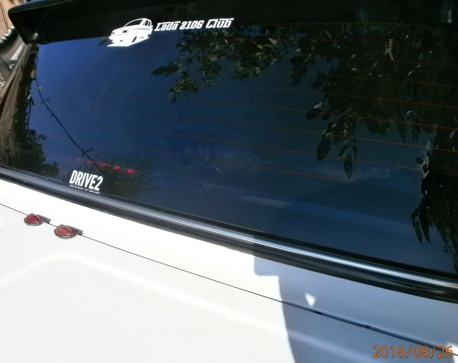 Потрепало жизнью красную наклейку Drive 2, очень ее жалко, но пришлось снять, теперь она живет в гараже, в замен на стекле красуется белая, в цвет машины)
