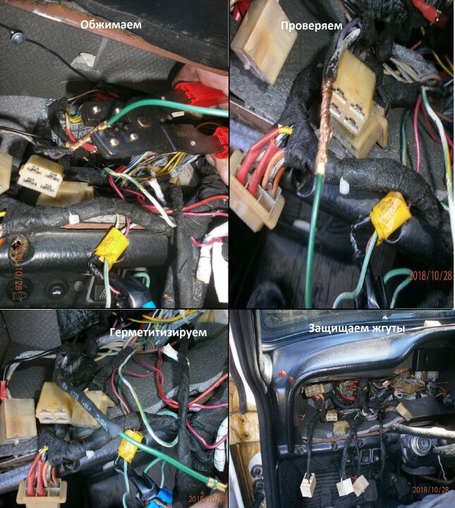 — Воспользовался ситуацией что приборы демонтированы, установил фишки для кнопок и немного навел порядок с лапшой под приборами, много чего переобжал, укоротил, замотал все лавсановой изолентой и закрепил жгуты стяжками: