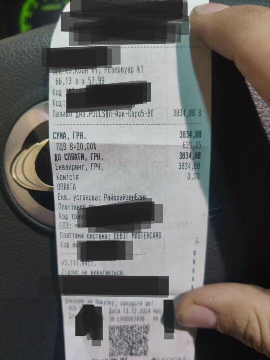 Від лампочки до повного залило 66 літр 130 мл. на загальну суму у 3834 грн 88 коп., вартість 1 літру ДП = 57.99 грн. (станом на 13.12.2024р.)